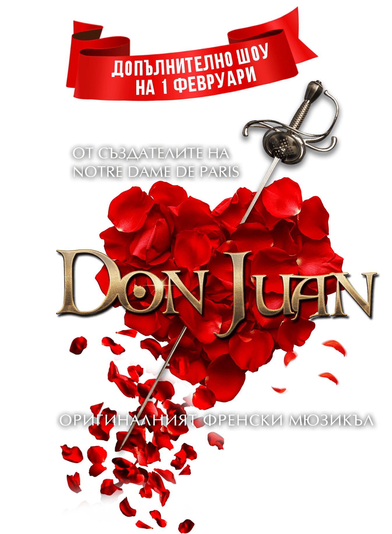От 28 до 31 януари 2026 г. на сцената на Националния дворец на културата пред българската публика ще бъде представен оригиналният френски мюзикъл "Дон Жуан" със субтитри на български език.